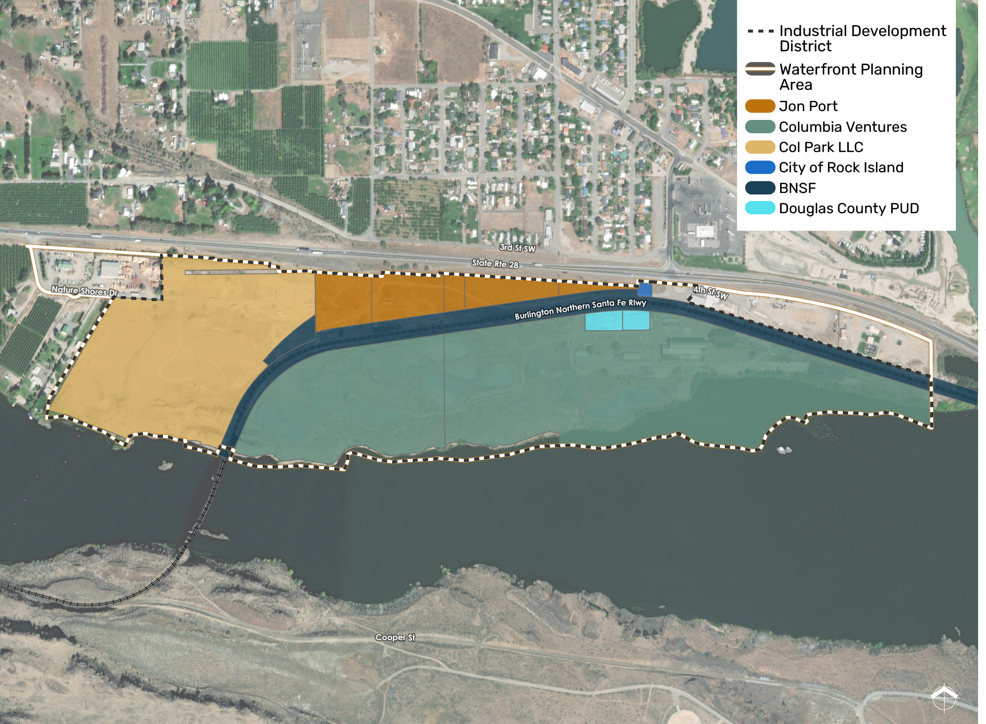 The City of Rock Island is featuring the roughly 207-acre Waterfront District as a unique redevelopment opportunity in the Wenatchee Valley. This property has approximately 6,500 feet of Columbia River frontage and existing assets that could factor into the property’s reuse including a former silicon smelter plant and BNSF rail access. While gaps exist, there is the ability to extend municipal infrastructure, and access to highway, rail, and the Columbia River.